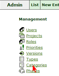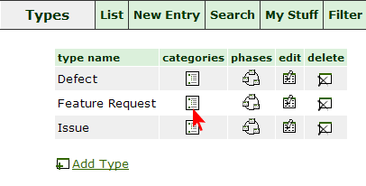 3. Choose "Type" value for which you would like to customize "Categories" by clicking "Categories" link.