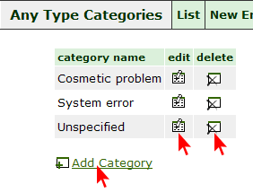 4. Click appropriate icon to add, edit or delete "Category" field value.