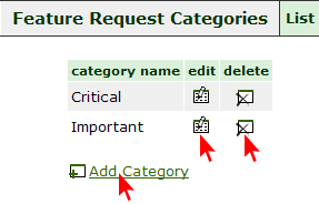 3. Click an appropriate link to add, edit or delete "Category" field value.