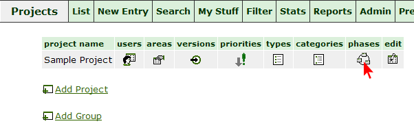 3. Choose project in which you want to restrict "Phase" field values and click "Phases" link.