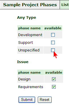 4. Use checkboxes to specify which "Phase" field values available for this project and submit changes.