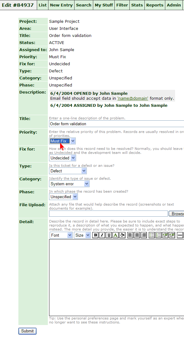 3. Choose required "Priority" field value and submit your changes.
