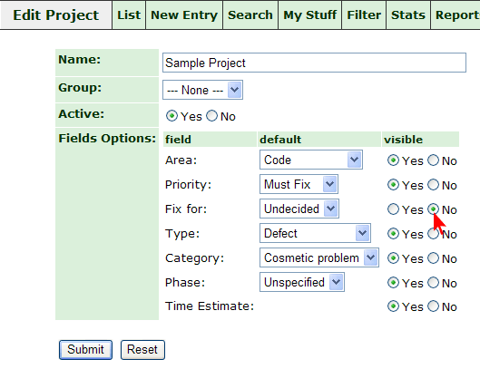 4. Set "visible" to "No" for the "Version" field and submit your changes.