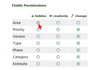 4. Specify "hidden", "read-only" or "change" access to "Area" field and submit your changes.